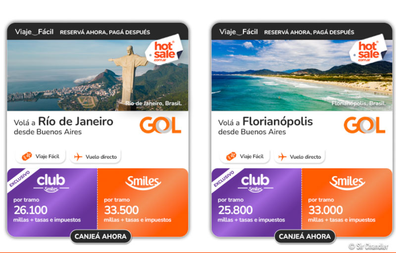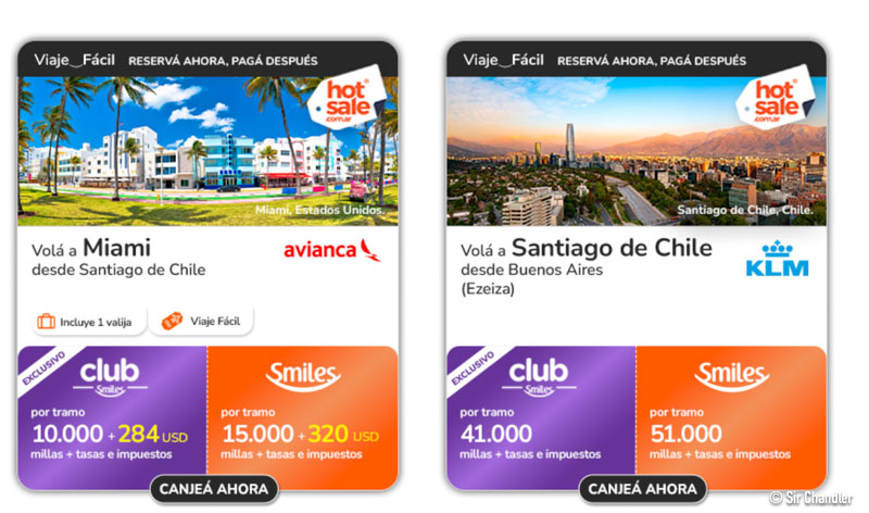 Para quien conoce Smiles… es algo ya conocido. Y también tiene la particularidad de promover cosas que hacen muchos milleros o buscadores de oferta, como volar a tal lado desde Santiago de Chile o desde San Pablo.