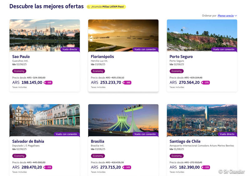 Esto lo tienen en https://www.latamairlines.com/ar/es/ofertas/ofertas-latam