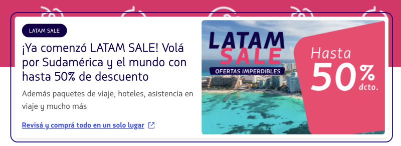 Latam este año no está oficialmente en el HOT SALE pero aprovecha como muchos a poner ofertas o a destacar precios y destinos. Luego la gente en la comparación verá si es conveniente