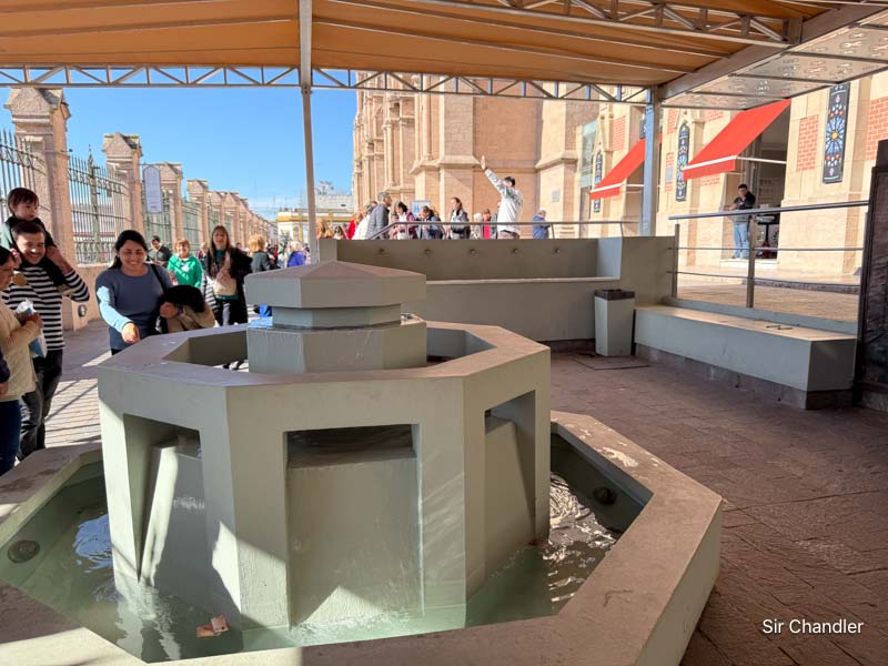 Botellas, botellitas, botellones, para el agua bendecida por algún parroco. Algo que también se ve en otros santuarios.