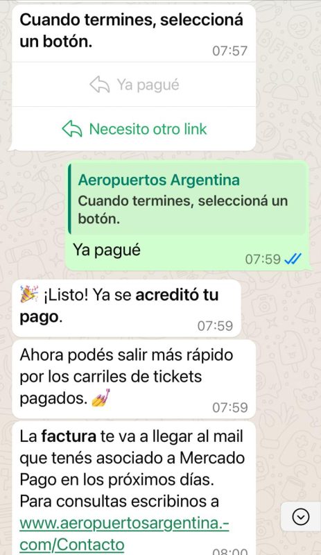 En Córdoba, Aeroparque, Mendoza y Ezeiza se podrá pagar menos por el estacionamiento pagando vía whatsapp o usando el TELEPASE (menos Mendoza que estimo no tiene).