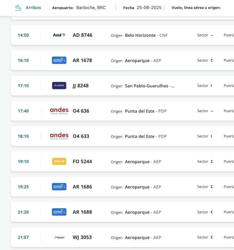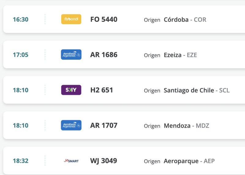 Como se puede ver en la planilla de arribos del sitio de aeropuertos argentina tendrán con media hora de diferencia dos vuelos desde el mismo origen. Pero por la mañana aparece otro más también desde PDP.