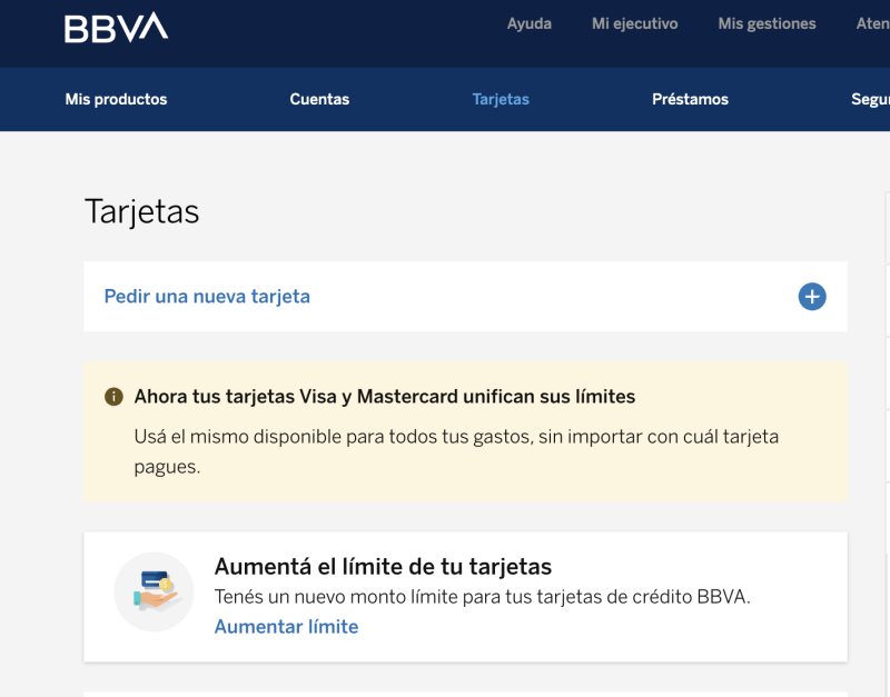Hola Sir, me acabo de fijar y si me sale el cartel de límites unificados, peor si entras a la Visa me muestra un límite y si entras a la Master, otro, así que deben estar “ajustando” todavía… y si… son lentos … seguimos luchando con tener un lugar donde poder ver los gastos de Master porque nunca más funcionó la web de socios…. Las cosas del BBVA 🤦🏼♀️