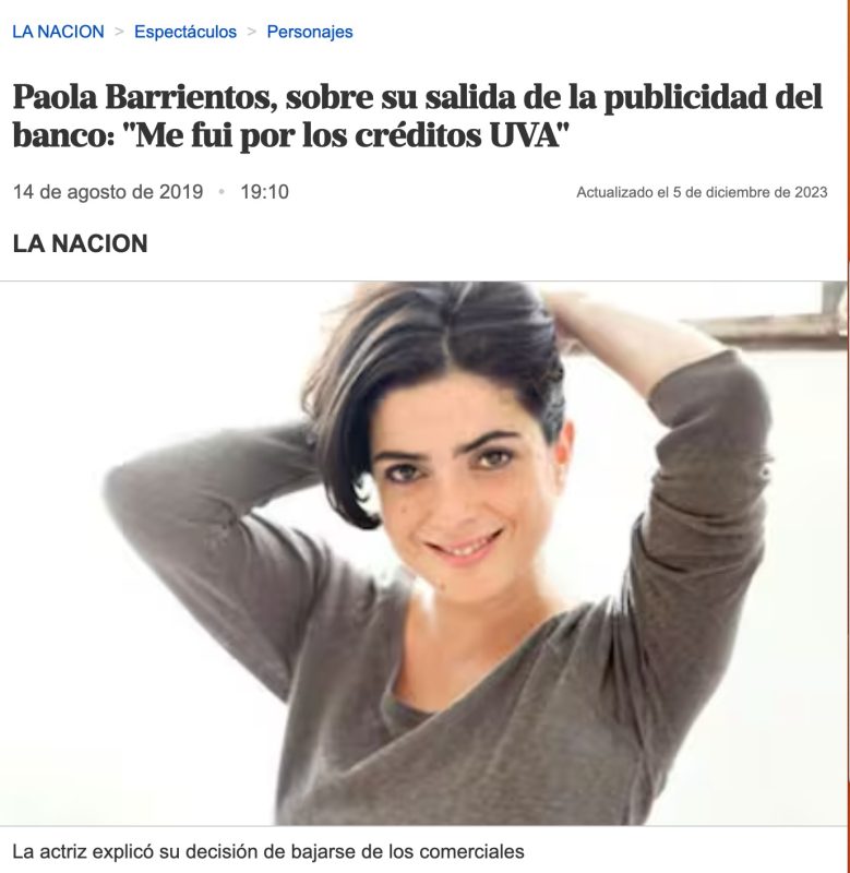 Quizás en todo este tiempo le explicaron como es una actualización UVA y que el problema es cuando hay la inflación, si los sueldos no se ajustan como corresponde y todo eso. Parte de la nota de La nación en 2019 https://www.lanacion.com.ar/espectaculos/personajes/paola-barrientos-su-salida-publicidad-del-banco-nid2277541/