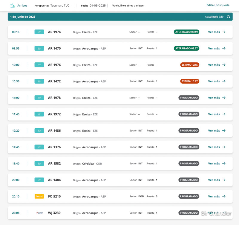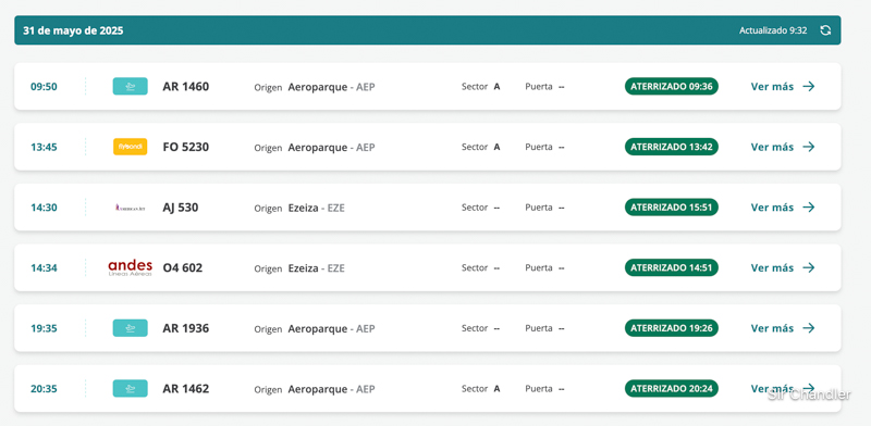 Como dato en los vuelos de Aerolíneas, si son AR19xx son los especiales o charters. Por lo que el único «normal» es el AR1464. Vemos un Andes también y el de Flybondi que también es regular