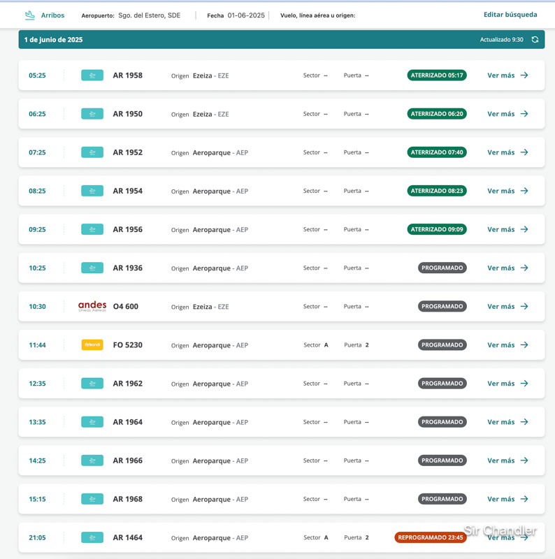 Pero por eso se agregaron muchos vuelos charters mayormente de Aerolíneas Argentinas. Hice una captura recién del movimiento de aviones en el aeropuerto de Santiago del Estero.
