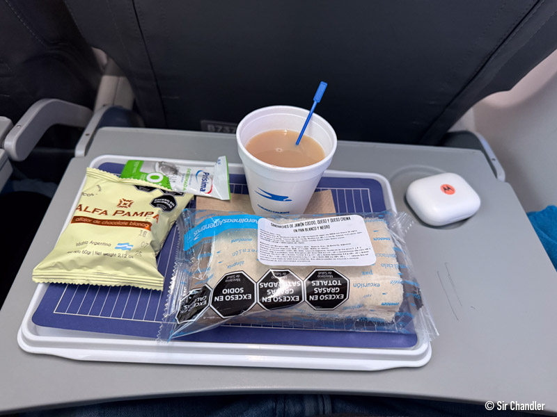 El servicio bordo que te dieron es exactamente igual al servicio que dan en premium economy entre Aeroparque y Santiago de Chile.