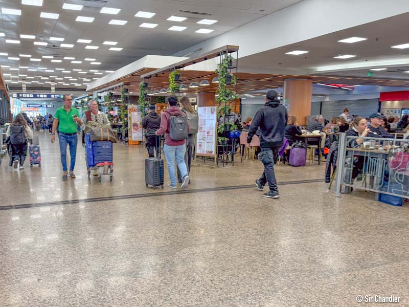 Luego de eso aduana, donde nadie decía nada y salida al lobby donde había una barrera para frenar a los que esperan. Era eso bastante enquilombado, también como se ve en Santiago o incluso en Ezeiza donde luego del embudo tenés a varios defensores de fútbol tapando como en una barrera el paso de los pasajeros