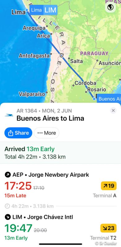 Entonces cuando todo ya parecía estar firme… compré el pasaje. Por precio estaban todos iguales casi, porque hay 4 aerolíneas que hacen el vuelo directo entre Buenos Aires y Lima; Aerolíneas Argentinas, Jetsmart, Latam y Sky. Como Aerolíneas fue la primera en operar en el nuevo aeropuerto era la que me aseguraba de cierta manera si había otro cambio, que llegara a la nueva terminal. Asi fue que saqué por ahí.