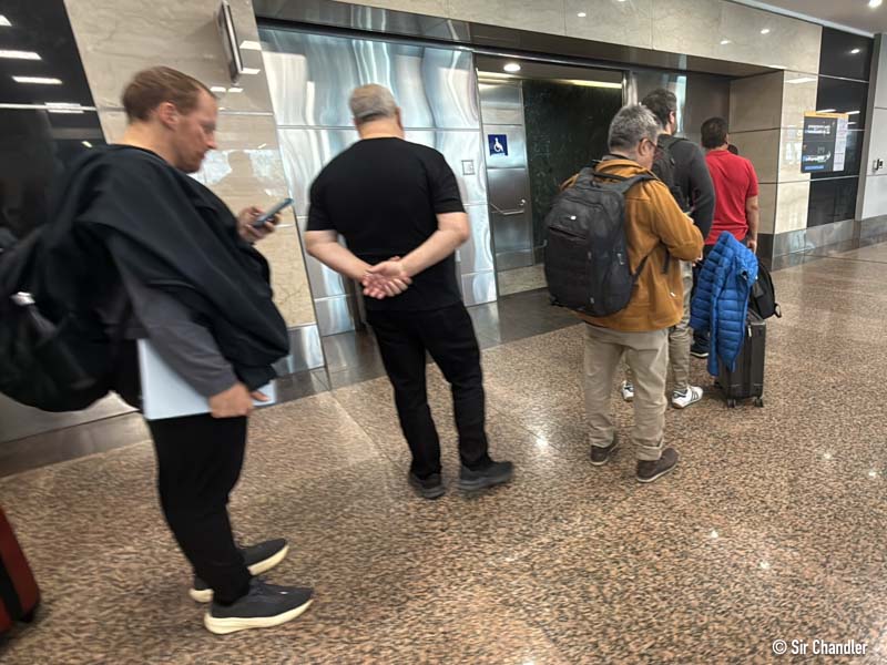 La parte internacional de Aeroparque necesita ampliación, pero no están informando desde el ORSNA cuales serán las obras en todo el país con el dinero que está en el fideicomiso… siempre se anuncia eso y tiene su presupuesto propio. Pero Aeroparque está estallado mientras Ezeiza se muere de risa en ese horario. Fila para el único baño de hombres con muchos vuelos por hora.
