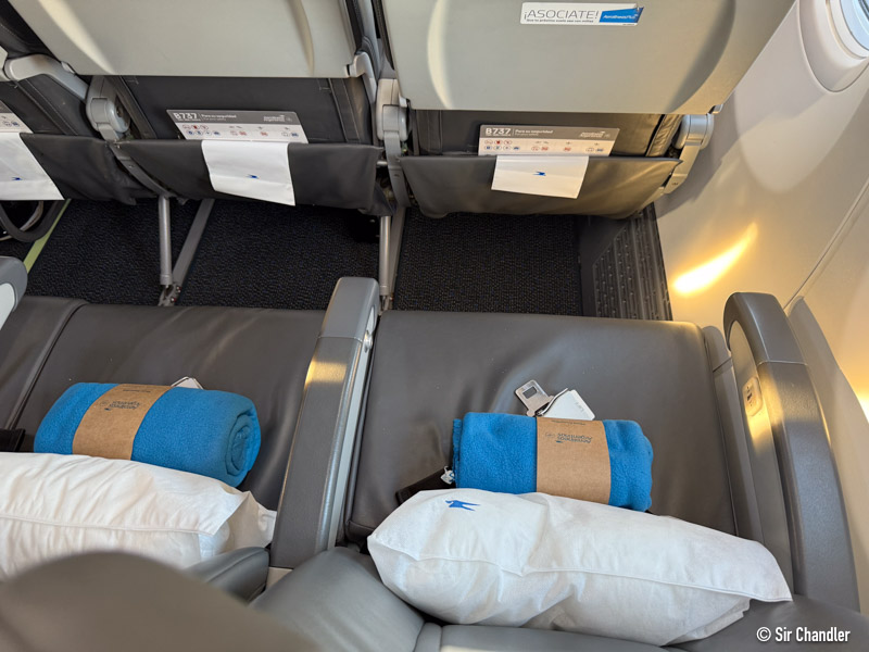 No recordaba que hubiera manta y almohada en este vuelo, pero lectora me lo confirmó en el video de que está hace mucho así. Mejor