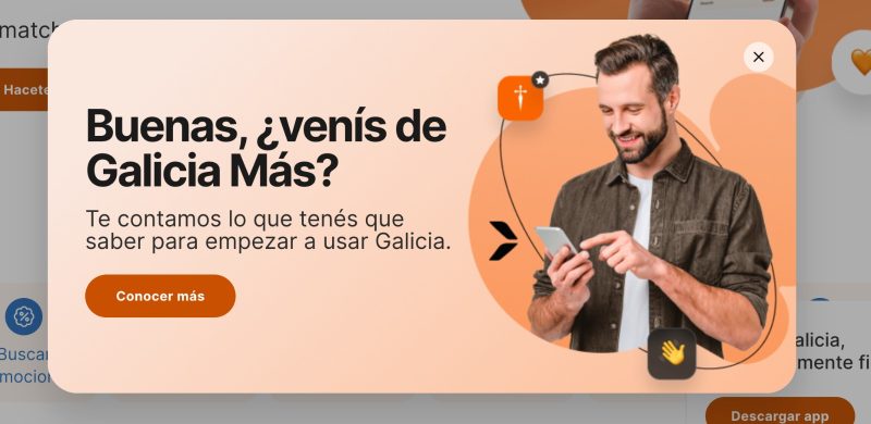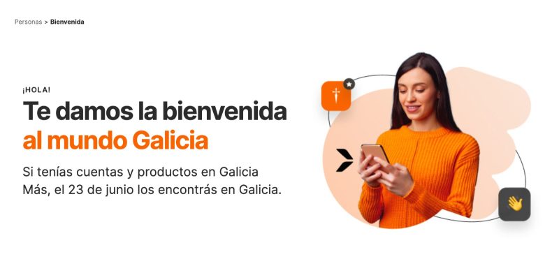Por el lado del sitio ahora hay un layer que es el de la portada de este post, que lleva a este link https://www.galicia.ar/personas/bienvenida-galicia-mas