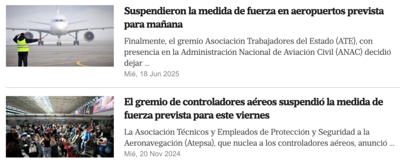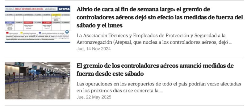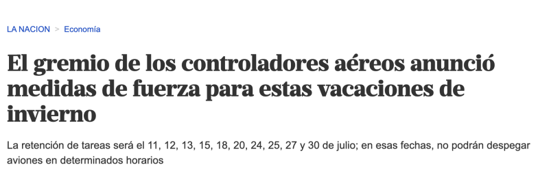 Pero acá realmente no se si son distintos gremios dentro de los controladores, son reemplazables los que se adhieren o cual es la razón, pero hasta ahora no veo efectos notables de estos avisos de paros. Por los copetes de las notas de La nación son dos gremios, quizás cuando se unan los dos si se sienta.