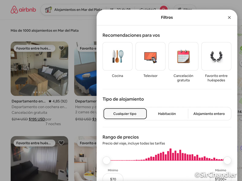 Pero si busco entre los Airbnb de Mar del Plata también tenemos más de 1.000 alojamientos