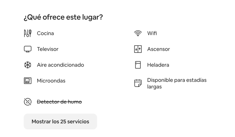 Y por eso AIRBNB tiene en sus características esa opción para que lo marquen. Y para destacar la importancia del tema, cuando no lo tienen no es que no muestra el item, al contrario lo pone como TACHADO para que quede claro que no hay