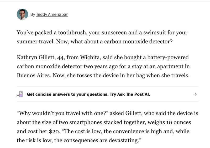 Esteban, un viejo lector del blog, me pasó que casualmente el Washington Post sacó una nota sobre riesgos de la intoxicación con monóxido de carbono en vacaciones… https://www.washingtonpost.com/wellness/2025/07/01/carbon-monoxide-detector-travel/
