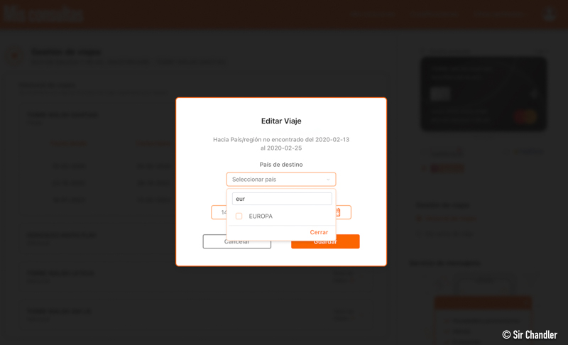 Esto también será para dar aviso de viaje, que de una se pueden marcar todas las tarjetas y las adicionales o de a una