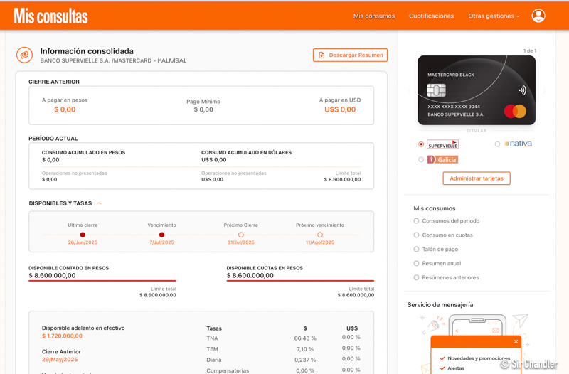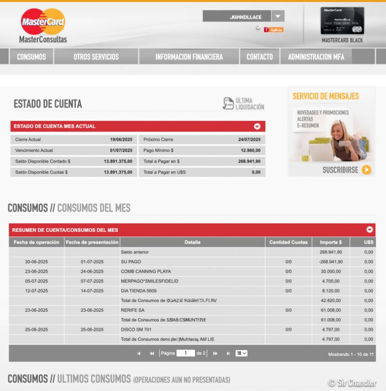 Por eso es que Visa home dejó de ser «visa» y pasó a ser MIS TARJETAS (aunque solo tiene visas…) y MASTER CONSULTAS pasa a ser MIS CONSULTAS (pese a que por algún tiempo entiendo solo tendrá Master… y luego otras).