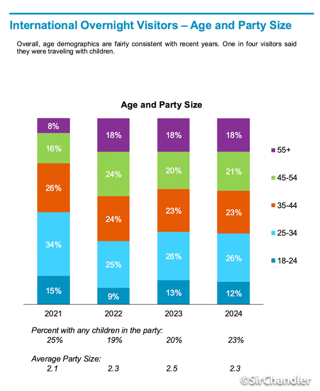 Promedio de edad de los visitantes internacionales y cantidad de personas que integran un grupo