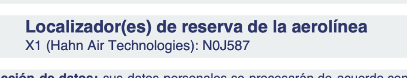 En primer lugar, el localizador de reserva para tickets emitidos con Amadeus, es mejor mirarlo al final de todo el PDF del itinerario. Esto se debe a que el de arriba es el localizador de Amadeus y el de abajo corresponde al de la aerolínea. Hago esta diferenciación, porque pueden ser códigos diferentes. Todo va a depender si la aerolínea trabaja también con Amadeus (mismo código en ambos cosas) o con otro GDS (códigos diferentes). Si ponen el código de amadeus en una aerolínea que por ejemplo usa Sabre les va a decir que no existe o que hay un error y van a entrar en pánico. Por eso siempre el de abajo para ahorrarse el mal momento.