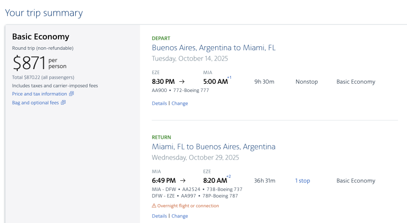 ahi entre en la pagina de AA pero si quiero reservar para esa fecha no me deja. Me parece que entendí mal.