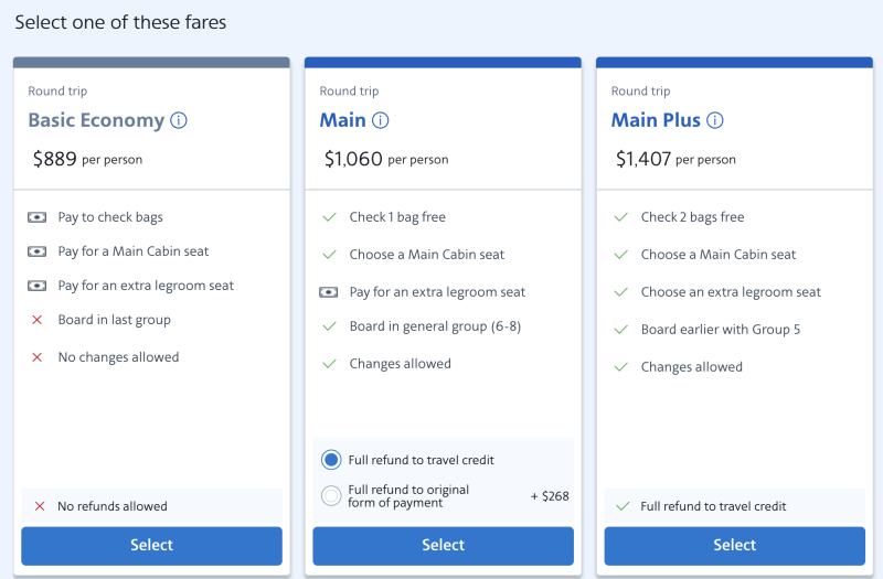 Acá el ejemplo de que la tarifa MAIN con el equipaje y la selección de asiento se va a UAS 1.060