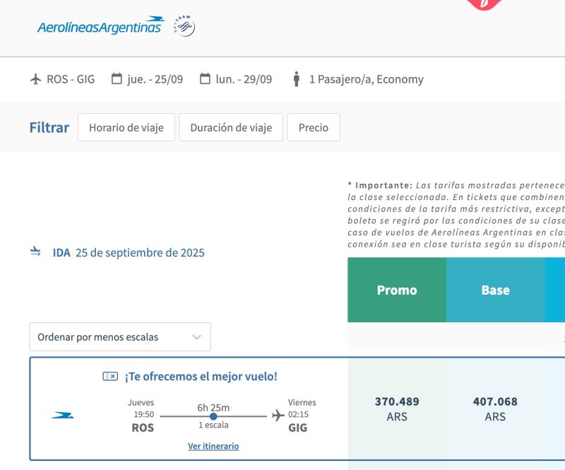 Aerolíneas sacó de la venta los pasajes a Rosario hace unos días.