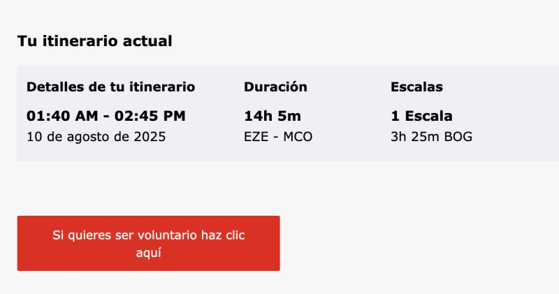 Tu vuelo puede necesitar voluntarios para tomar un vuelo posterior.