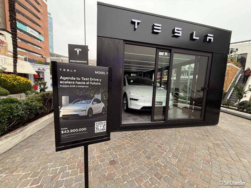 En su ingreso suele haber varias cosas llamativas, lo que me sirvió para ver el costo de un Tesla en Chile, que igualmente no están teniendo mucho éxito me comentaron los locales, quizás por la invasión china en general de autos de distintas clases