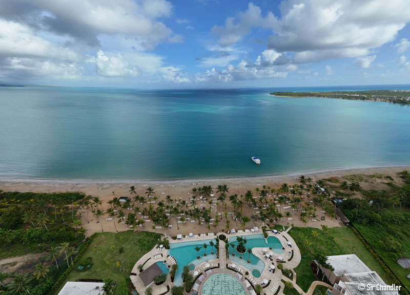 Como se ver en las fotos del dron que están más arriba y en el video, la piscina principal está pegada a la playa y es muy grande