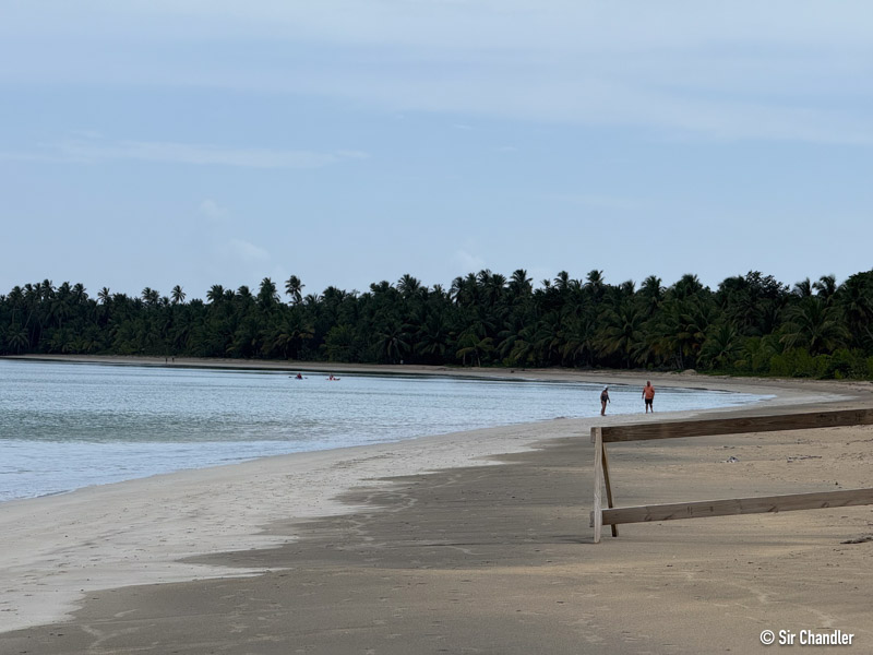 La playa es amplia y tranquila, aunque sin esas aguas cristalinas típicas del Caribe.