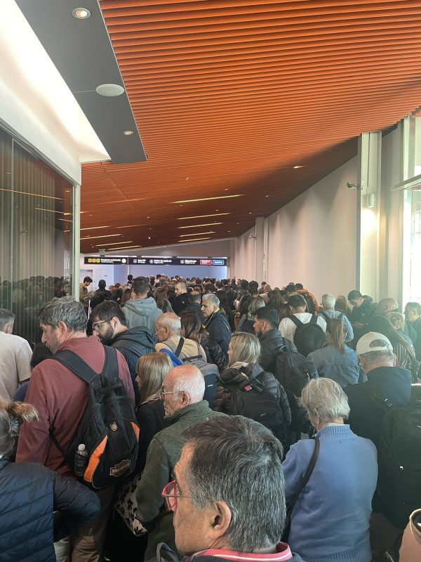 El tema es que este retiro parcial de máquinas… está complicando el ingreso en los horarios pico. Yo puse un post hace unos días cuando volví de Bogotá donde había una fila larga, pero no tanta gente. Básicamente el post era para que no pasen por las express porque al ser tan pocas POR AHORA se complica.
