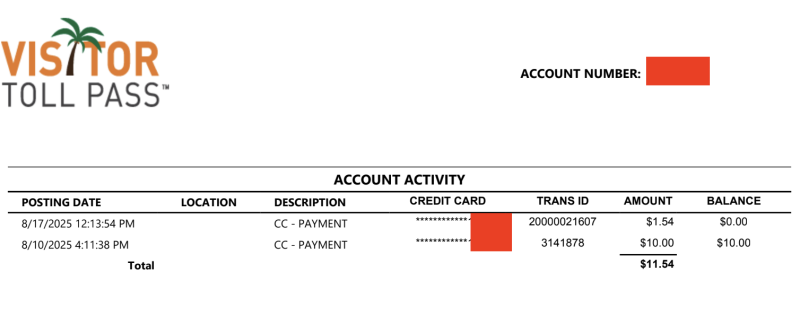 Hola Sir, usé el VTP en febrero… ¡una joyita! Solo cuelgas el cartón en el espejo, te registras en la app y a rodar. Cuando devolví el carro en Miami, a los días me llegó el extracto: todos los peajes que pasé y, cómo no, los $10 por no devolver el cartón. Igual sigue siendo más barato que lo que te clavan las rentadoras, y un poquito menos que el SunPass. Lo bueno es que por diez dólares ya tengo un cartón “edición limitada” decorando mi oficina. 😅