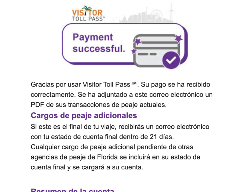 Pero bueno, esto es algo que facilita a los que no quieren comprar el sunpass y salir ya desde el aeropuerto de Orlando con todo solucionado. Es mucho más simple todo.