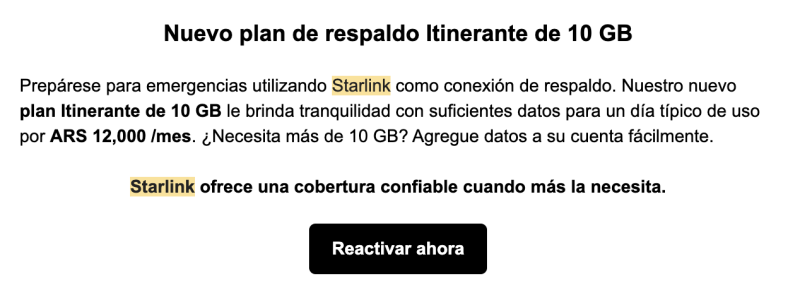 Previo a que la volviera a prender para el viaje por Misiones y Corrientes donde la usamos en los destinos, pero también en el techo del auto, me llegaban promociones para tenerla prendida como plan de respaldo con 10GB mensuales y un plan de 12.000 pesos.