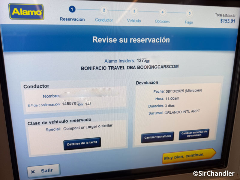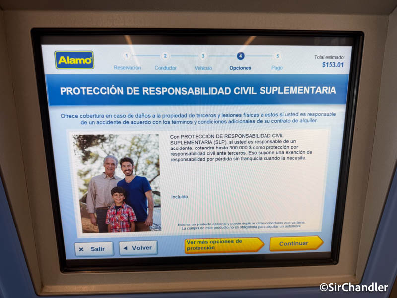 En Orlando también Alamo tiene las máquinas que se ven en el aeropuerto de Miami que evita FUNDAMENTALMENTE que un vendedor te enchufe algo que no querés. En la reserva a la que entré al poner mi DNI, para que sea la licencia de conducir y el país de origen, me figuraba eso también de compact or larger o similar