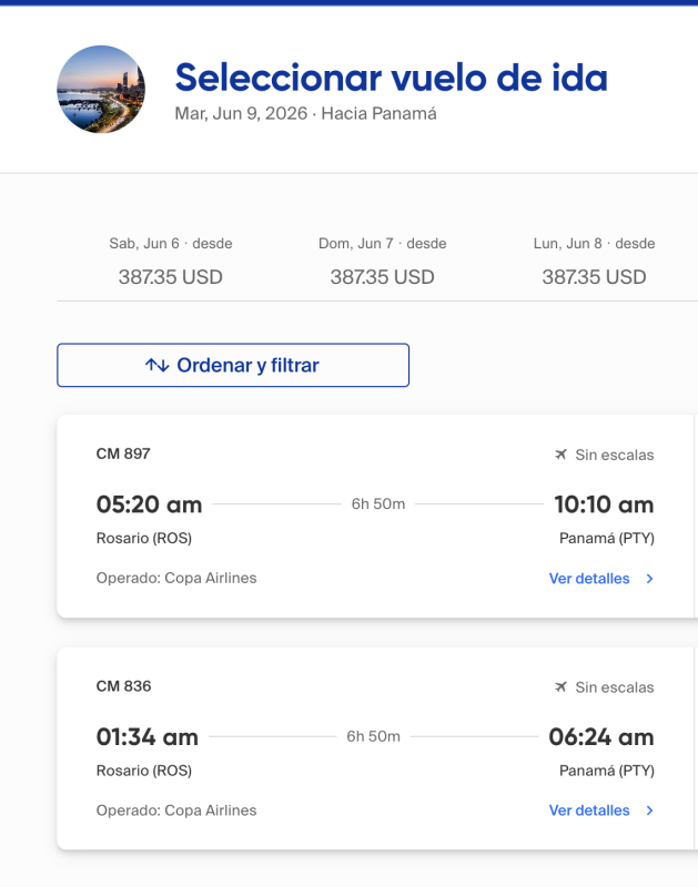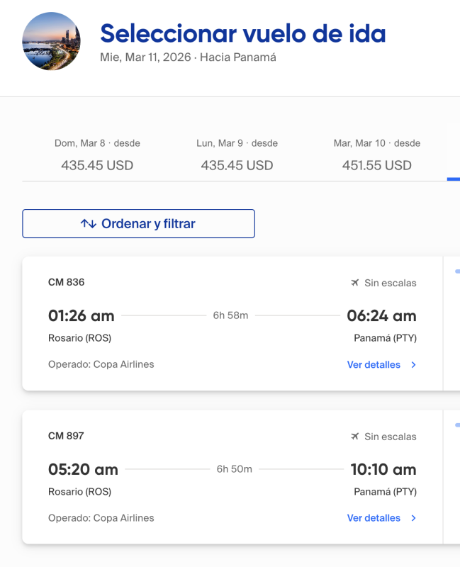 Si bien en Rosario se cortan los vuelos en pocos días más por el cierre del aeropuerto, cosa que durará hasta fin de este año, ya aparecía la programación de enero y febrero al menos con COPA de varios días con dos vuelos diarios.