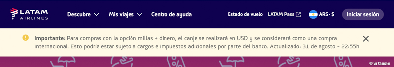 - Desde septiembre 2025 Latam Pass vuelve a canjearse directo en el sitio de Latam y no mediante agencia.