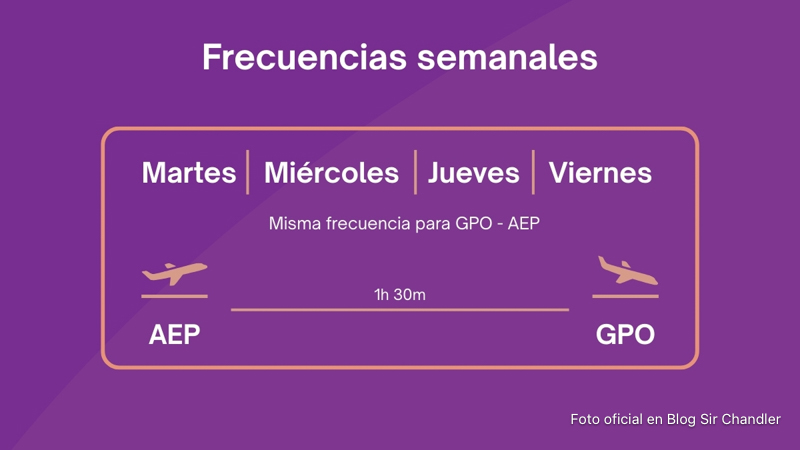 Este vuelo se anunció en cuenta gotas esta semana, pero básicamente serán 4 vuelos por semana y con los Metro. Pero la aerolínea también tiene ATR42 y 72 como también los ERJ 145. O sea en el caso de éxito de la ruta, tiene chances de escalarla. Igualmente siempre es una gran incógnita.