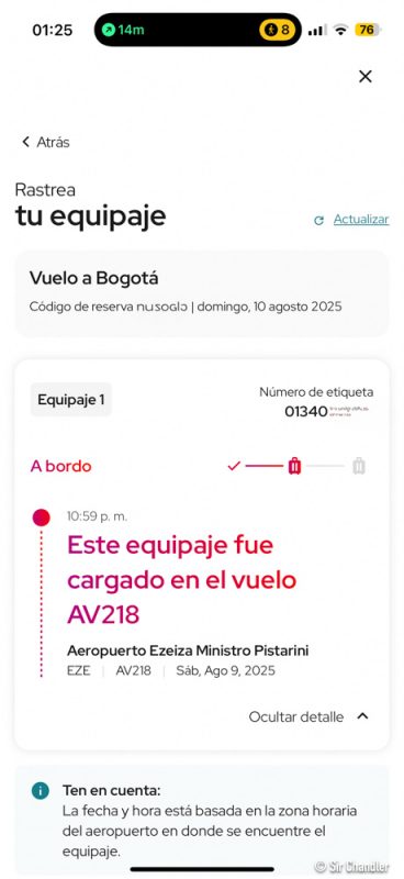 Aprovecho para recordar que por lo general conviene tener la app de una aerolínea. En el caso de la de Avianca tiene seguimiento de equipaje