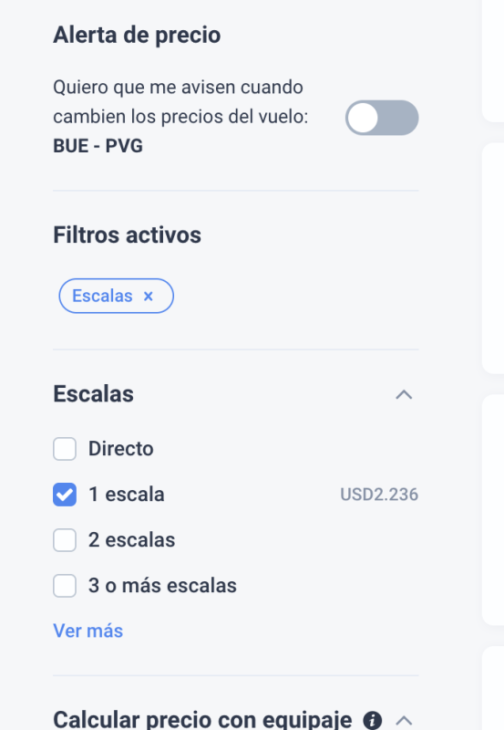 Lo mismo en Turismo City, que muestra los vuelos con una escala
