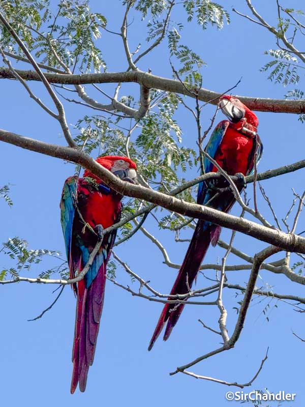 Me puse a grabar video… y sobre ese momento hice la captura que se ve arriba. Tuvimos el honor de ver los tres guacamayos que poco tiempo atrás había soltado la gente de Rewilding en los Esteros del Iberá.