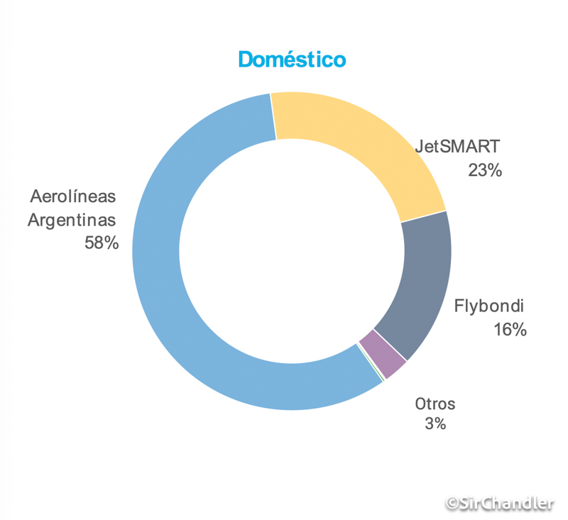 La torta nacional tiene estos repartos, con Jetsmart pesando mucho más que Flybondi, pero será interesante ver que pasa en diciembre cuando FB traiga los demás aviones alquilados con tripulaciones