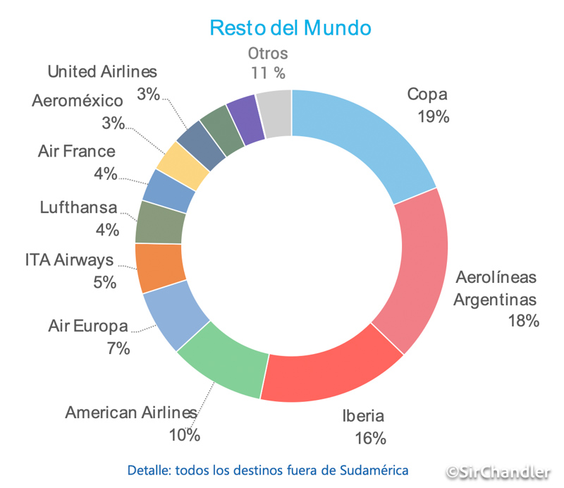 Fuera de Sudamérica, vemos como COPA ganó el primer lugar gracias a la suma de vuelos y también destinos porque ya arrancó con Tucumán y Salta