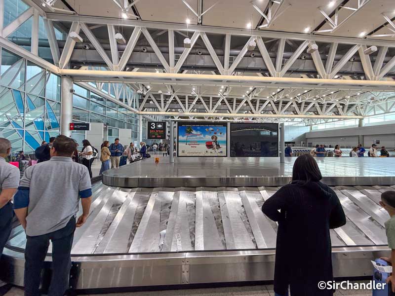 Cuando uno sale por el camino normal, llegando con Aerolíneas Argentinas, Latam, Copa, Avianca, Sky, Gol… y estimo también United y Delta, está de ese lado del aeropuerto. Por lo general si llegan a la terminal J ven este cartel y ahí abajo está la cinta. Esta foto es de hace unos años. Pero ahí abajo de eso es que la cinta está cerrada