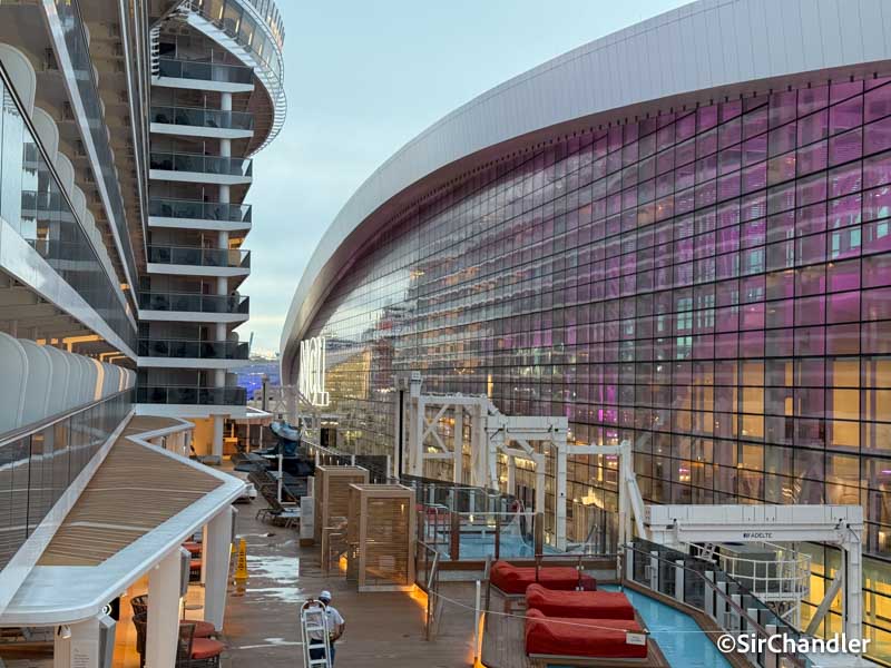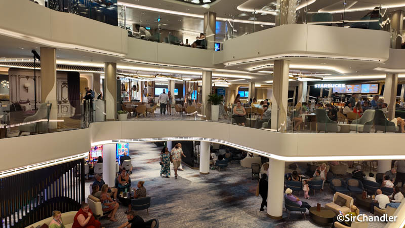 El barco tiene algunos espacios distintos. En los años que tomé cruceros veo como van cambiando algunas cosas clásicas. Pasan a tener espacios más amplios por ejemplo, como este lobby de tres niveles, dejando de lado el clásico círculo de los comienzos o de las últimas décadas