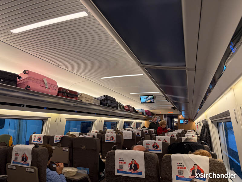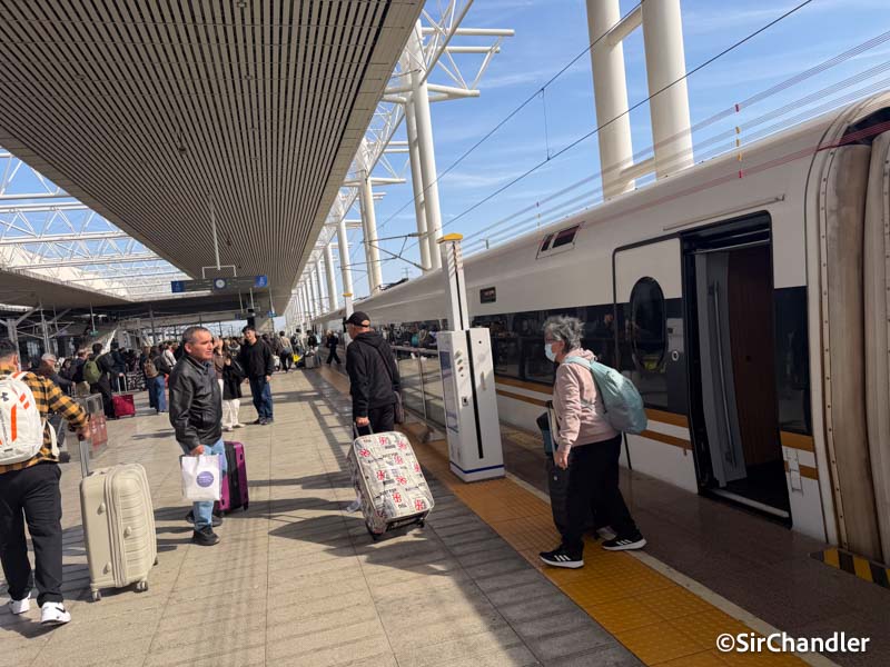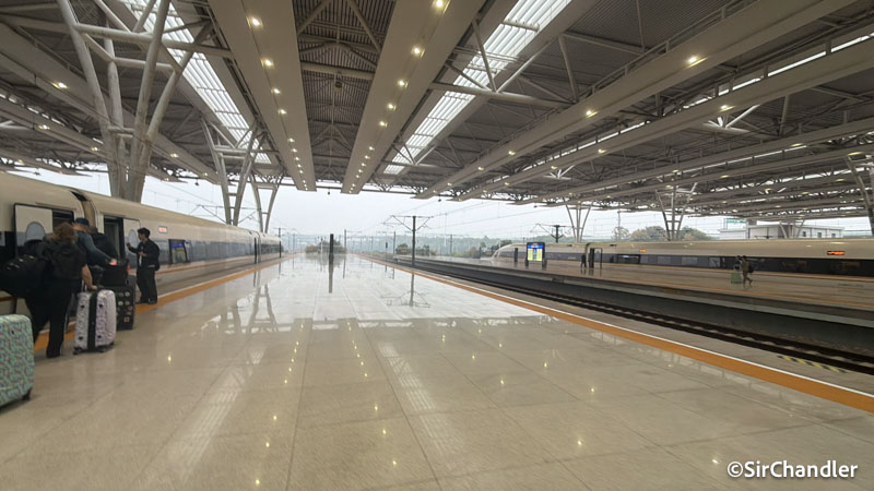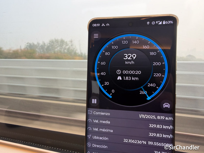 Durante mi viaje a China, tomé varios trenes rápidos, pero el trayecto más largo fue desde Shanghái, saliendo desde una estación cercana al segundo aeropuerto de la ciudad. La experiencia fue muy similar a volar: control de seguridad riguroso, andenes organizados y embarque anticipado. El tren, cómodo y moderno, superaba los 300 km/h sin sentirse. Tenía una floja capacidad para equipaje grande, baños de dos tipos y un vagón comedor con opciones que no pude saber que eran por el idioma. Documenté todo el trayecto, incluyendo detalles curiosos y el sistema de seguridad en los andenes.