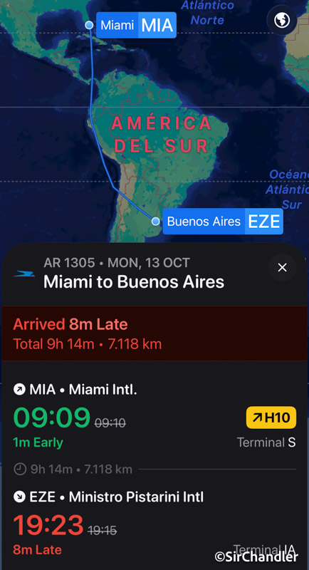 En flighty quedó la ruta del vuelo que salió a horario pero llegó esos 9 minutos tarde, que no recuerdo si pasó algo, pero quizás fue por la aproximación o algún desvío en la ruta. Pero fue algo menor.
