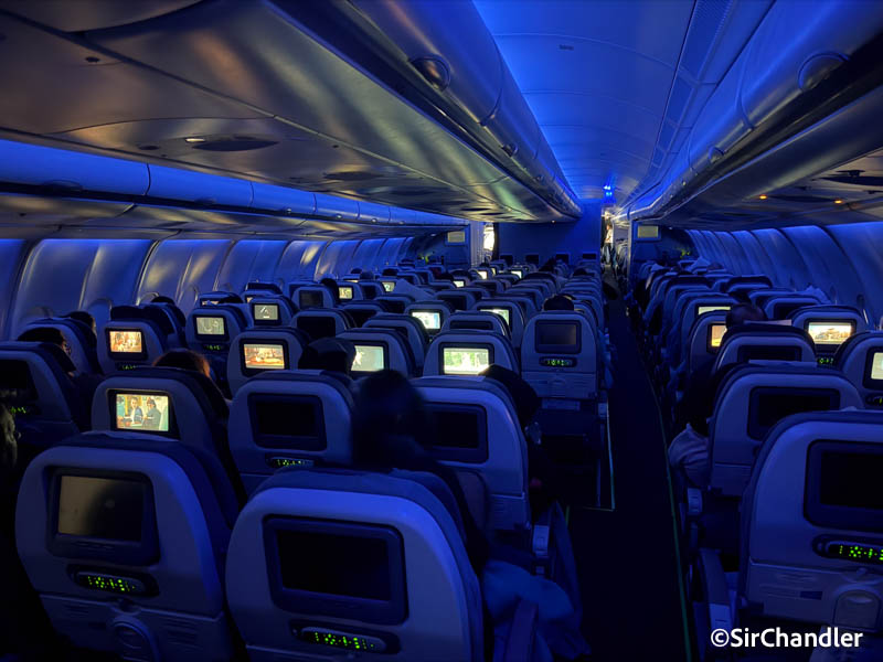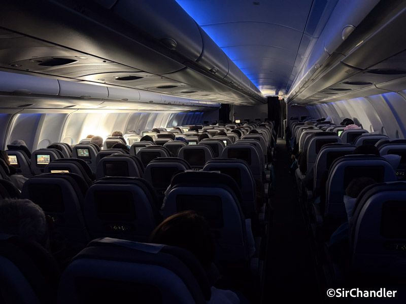 Y fui al medio… porque al estar los tres no nos íbamos a separar en el costado, ya que los A330 son 2-4-2 en los asientos. Pero quedó uno libre y así aprovechamos mejor el espacio