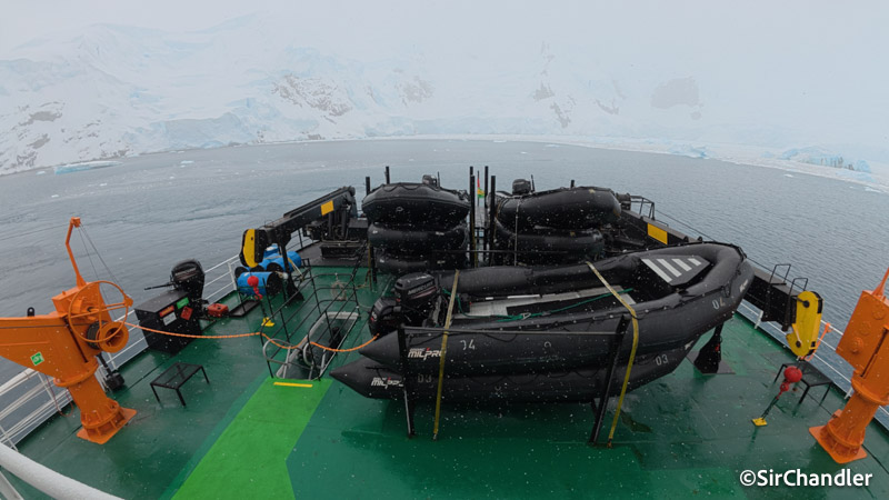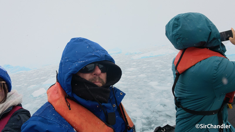 Selfie entre el hielo en uno de los botes con el salvavidas